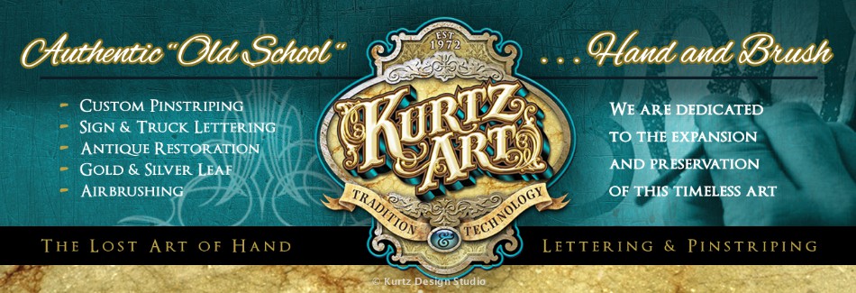 Professional hand lettering, authentic restorations, freehand pinstriping, airbrush murals, gold and silver leaf on storefront glass to boats, trucks and motorcycles combining tradition and technology. Kurtz Design will customize a solution that meets your needs and is still affordable. We take the time to understand your goal. Your success is our success.